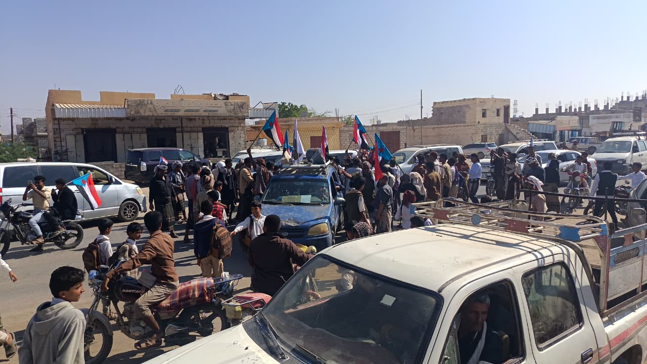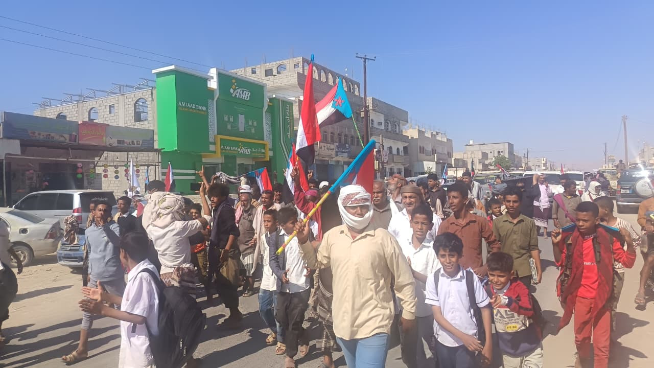 وفي المسيرة الجماهيرية التي جابت شوارع مدينة جول الريدة عاصمة المديرية، رفع المشاركون اعلام الجنوب، مرددين الهتافات المؤيدة والمباركة للقوات المسلحة الجنوبية بانتصارها في تحرير عارين ووادي حضرموت.