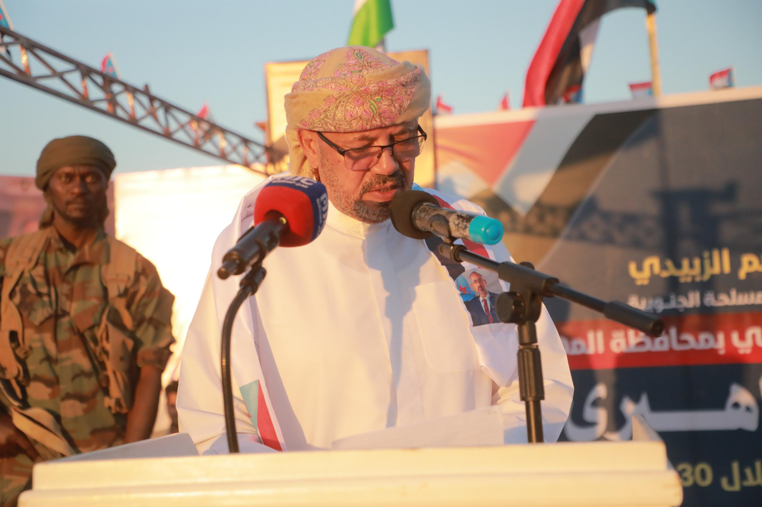 من جانبه، أكد عضو هيئة رئاسة المجلس الانتقالي الجنوبي، الشيخ راجح سعيد باكريت، أن احتفال هذا العام يأتي محمّلاً ببشائر النصر والتحرير الكامل لأراضي الجنوب، مشيدًا برسوخ أمن المهرة ووعي أبنائها، ومقدمًا شكره للرئيس الزُبيدي، على قيادته الحكيمة، وللدول الداعمة، ومهنئًا القوات المسلحة الجنوبية باستلامها المواقع العسكرية والأمنية في المحافظة.