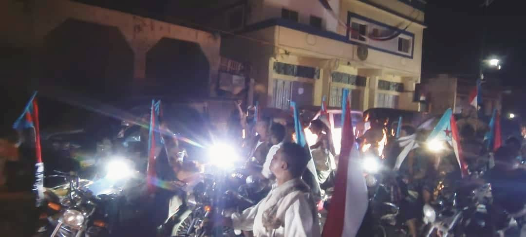 وانطلقت المسيرة التي يتقدمها رئيس تنفيذية انتقالي الحوطة، فارض البان، وعدد من أعضاء القيادة المحلية لانتقالي المحافظة، من وسط المديرية، وجابت الشارع الرئيسي، تخللها إطلاق ألعاب نارية ابتهاجاً بهذه المناسبة العظيمة.