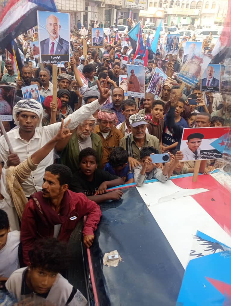 وعبر المشاركون في المسيرة الجماهيرية، عن فرحتهم بالنصر الذي حققته القوات المسلحة الجنوبية، في وادي حضرموت، مرددين الهتافات المطالبة بسرعة الإعلان عن دولة الجنوب العربي.