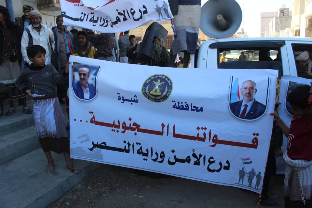 نظمت القيادة المحلية للمجلس الانتقالي الجنوبي في مديرية بيحان بمحافظة شبوة، اليوم السبت، مسيرة جماهيرية حاشدة، احتفالاً بالانتصارات التي حققتها القوات المسلحة الجنوبية في عارين بشبوة، ووادي وصحراء حضرموت.