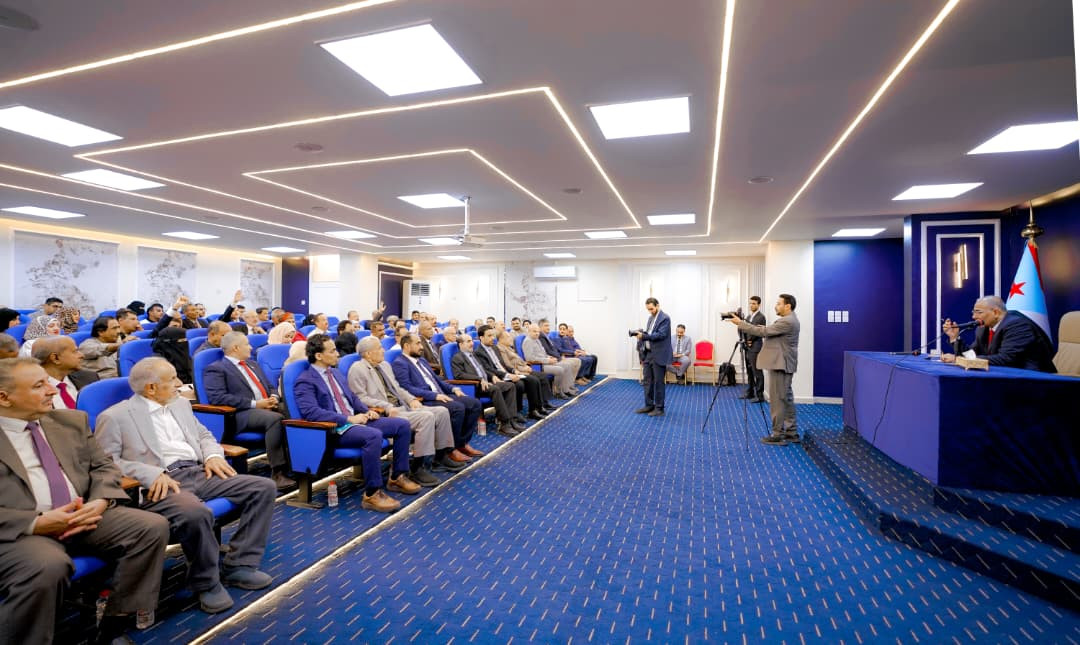 عقد الرئيس القائد عيدروس قاسم الزُبيدي، رئيس المجلس الانتقالي الجنوبي، نائب رئيس مجلس القيادة الرئاسي، اليوم الثلاثاء، لقاءً موسعًا ضم أعضاء هيئة رئاسة المجلس، ورؤساء هيئات الأمانة العامة، ورؤساء لجان الجمعية الوطنية، ومجلس المستشارين.