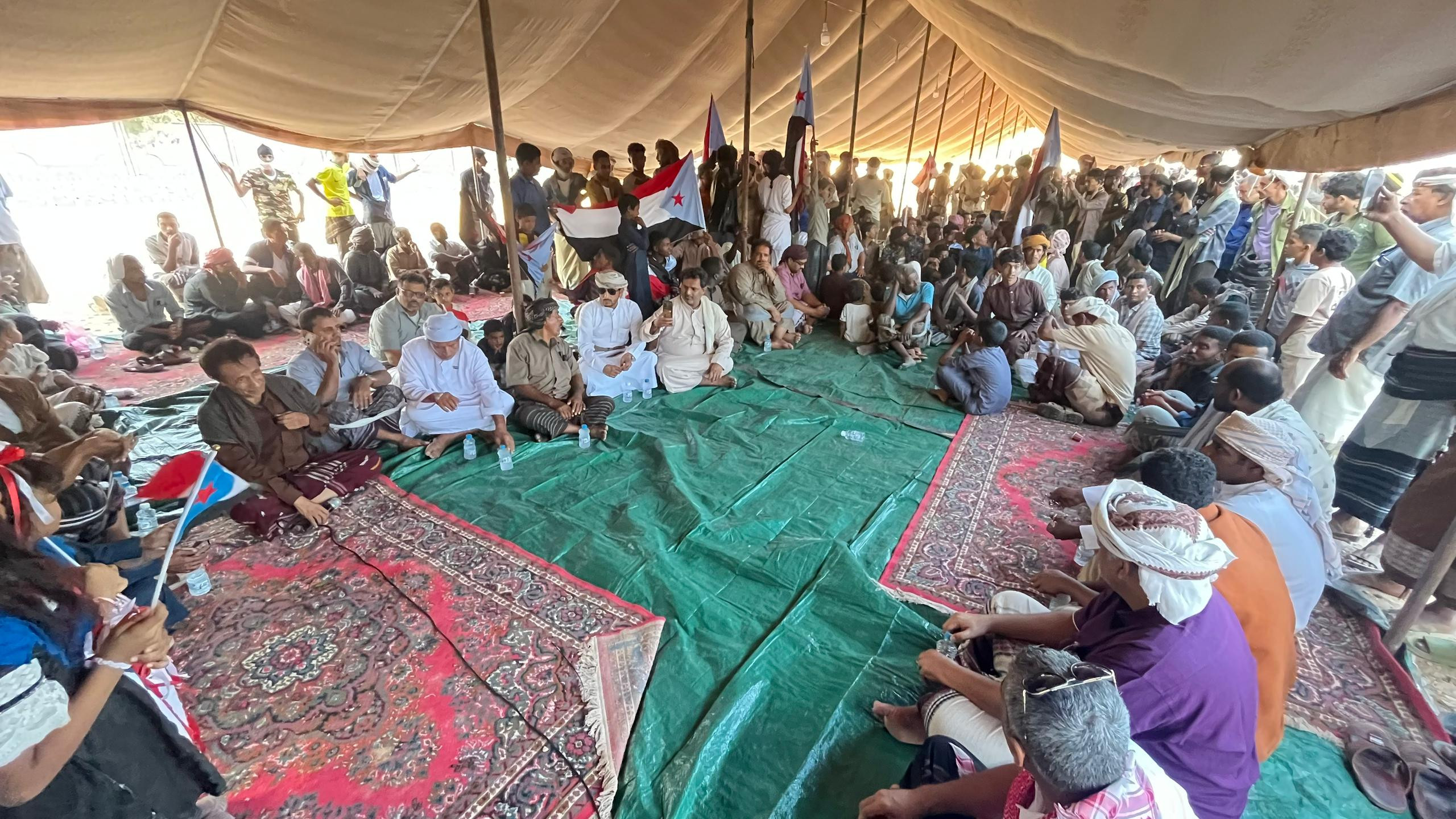 بحضور فريق التوجيه والرقابة الرئاسي.. أبناء لحج يواصلون اعتصامهم المفتوح للمطالبة بإعلان دولة الجنوب العربي