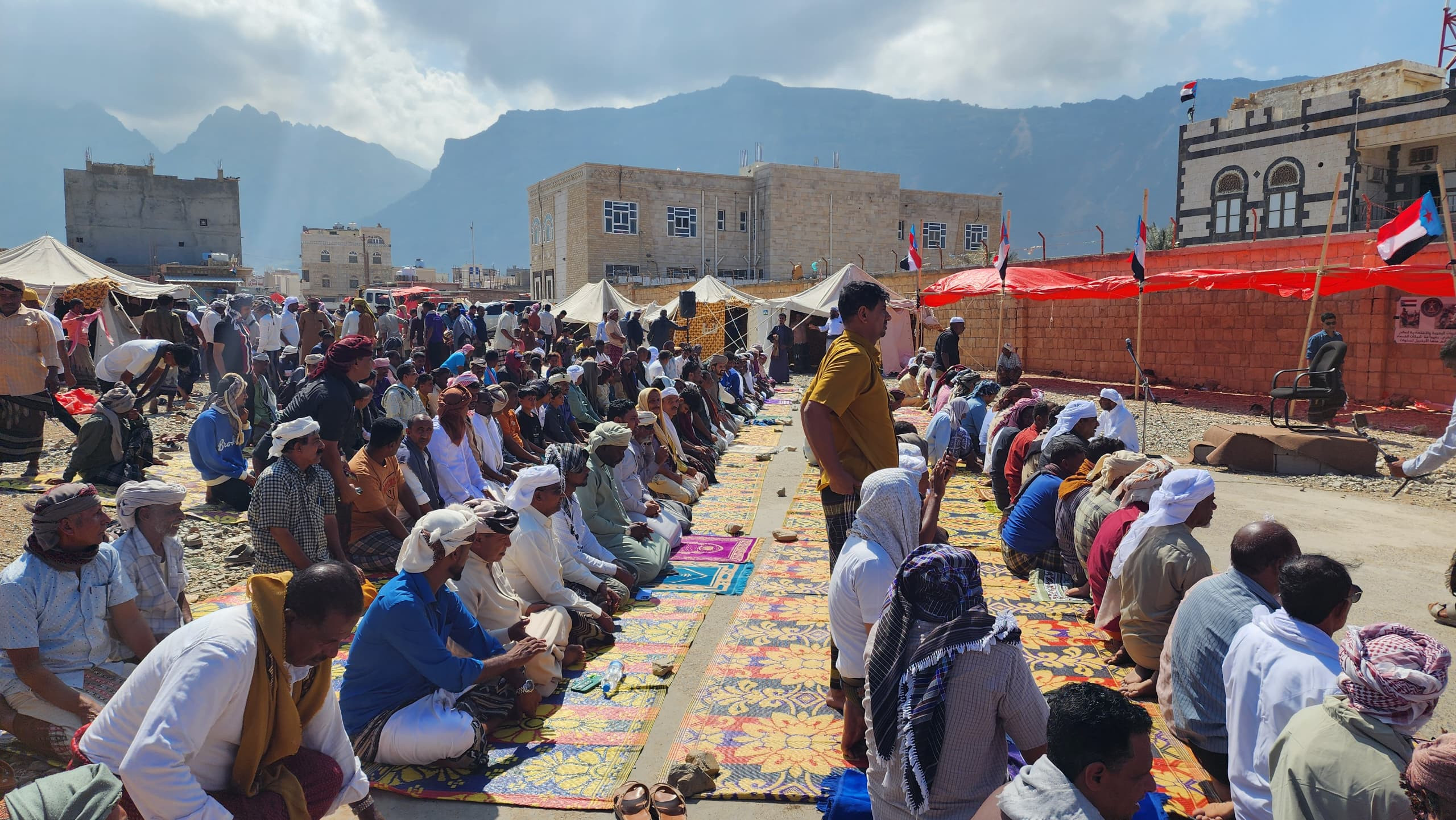 أدّى آلاف المعتصمين، يتقدمهم رئيس الهيئة التنفيذية للقيادة المحلية للمجلس الانتقالي الجنوبي في محافظة سقطرى، سعيد بن قبلان، ورئيس المجلس الوطني لأبناء المحافظة، السلطان علي بن عيسى، صلاة جمعة "الوفاء للمشروع العربي"، في ساحة الاعتصام بمديرية حديبو.