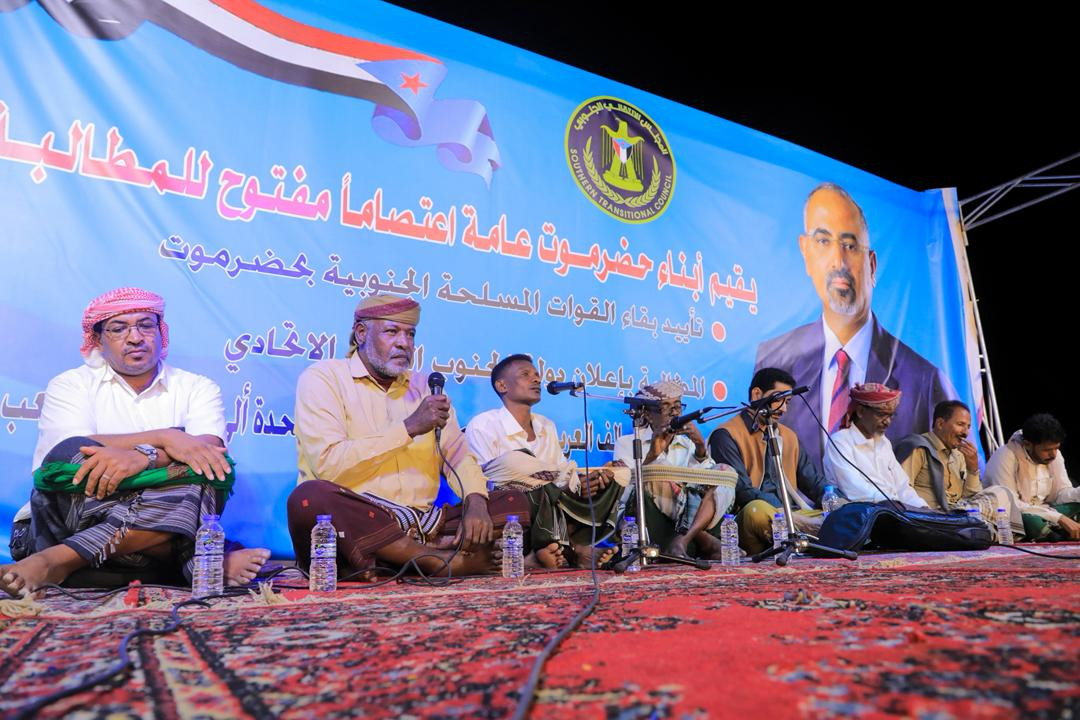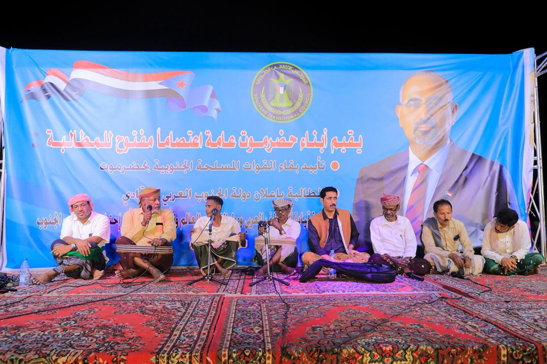 شهدت ساحة الاعتصام المفتوح بمدينة المكلا، مساء السبت، أمسية تراثية وشعرية حاشدة، تفاعل معها جمهور غفير في أجواء وطنية جسدت روح الاصطفاف الشعبي، وأكدت تمسك المشاركين بالمطالب الثورية وفي مقدمتها الدعوة إلى إعلان دولة الجنوب العربي.