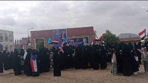حشد نسائي في ساحة كلية ردفان للمطالبة بإعلان دولة الجنوب العربي
