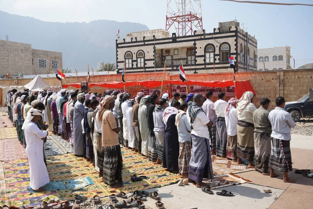 وتقدّم جموع المصلين رئيس تنفيذية انتقالي سقطرى، سعيد عمر بن قبلان، ورئيس كتلة الجمعية الوطنية بالمحافظة، ناظم مبارك علي، ورئيس المجلس الوطني لأبناء سقطرى، السلطان علي بن عفرار، ووكيل المحافظة رائد الجريبي، ومدير مكتب المحافظ فهمي علي إبراهيم، ومدير عام مديرية حديبو، عبدالحليم محمد، وعدد من القيادات العسكرية والأمنية والشخصيات الاجتماعية، في دلالة واضحة على وحدة الموقف الرسمي والشعبي.