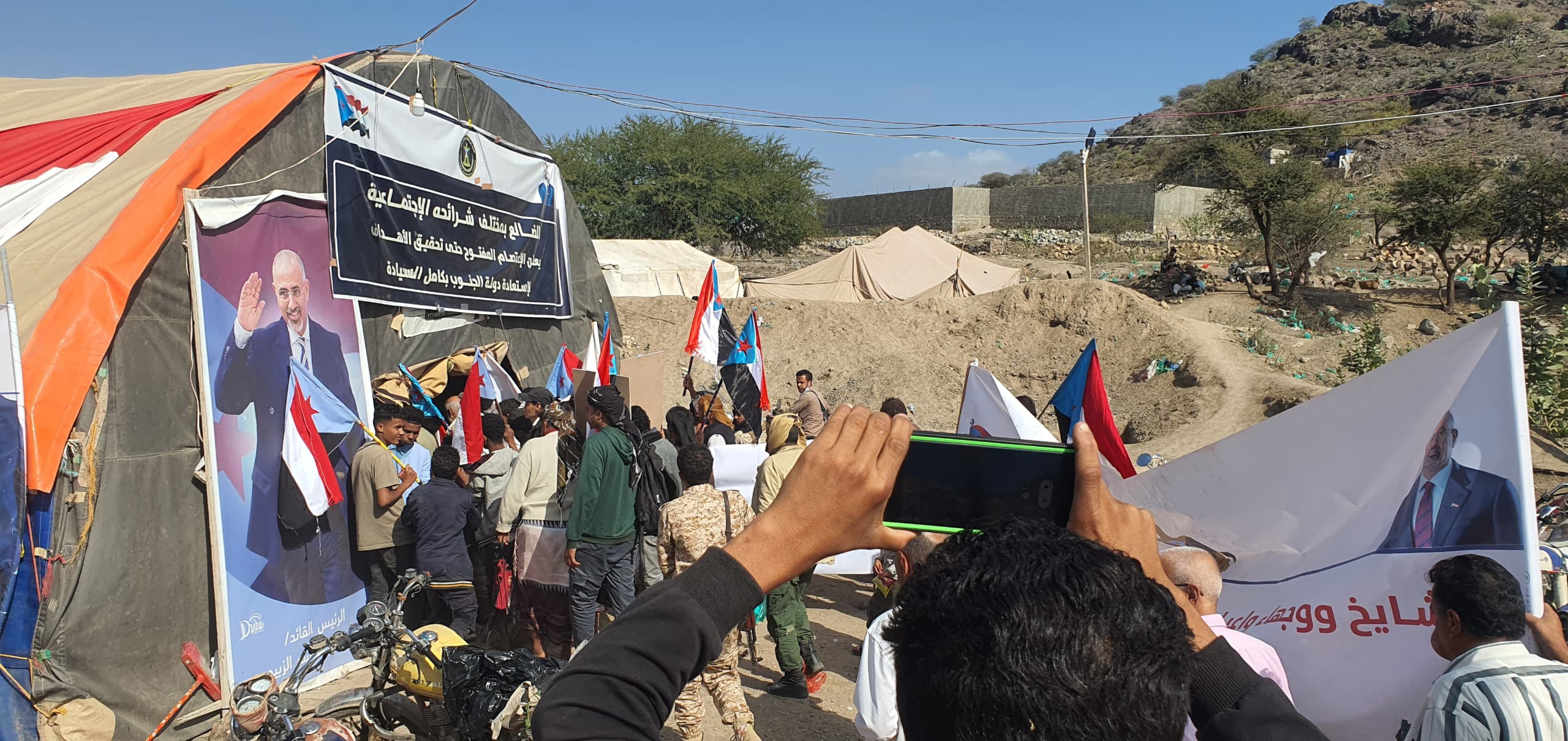 وفي سياق متصل، استقبل مخيم الاعتصام المفتوح بمحافظة الضالع، وفدًا جماهيريًا من أبناء منطقة بلاد الشاعري، ضم مشايخ ووجهاء وأعيان ومثقفين، في خطوة تؤكد توسيع قاعدة المشاركة الشعبية بالاعتصام.