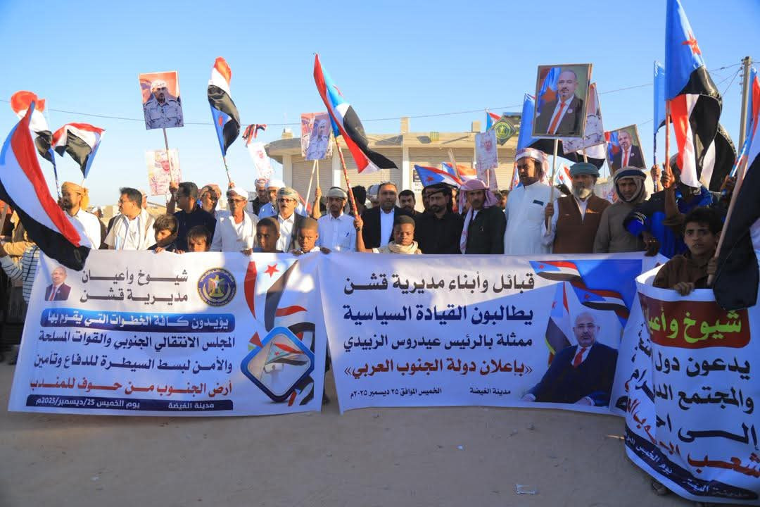 وبارك رئيس تنفيذية انتقالي قشن صالح سعدان، لشعب الجنوب وقيادته السياسية الانتصارات التي تحققت في محافظتي حضرموت والمهرة، مؤكدًا أن هذه الحشود الجماهيرية في المديريات والمحافظات تمثل خطوات متقدمة تقرّب أبناء الجنوب من تحقيق هدفهم المنشود بإعلان الدولة الجنوبية.