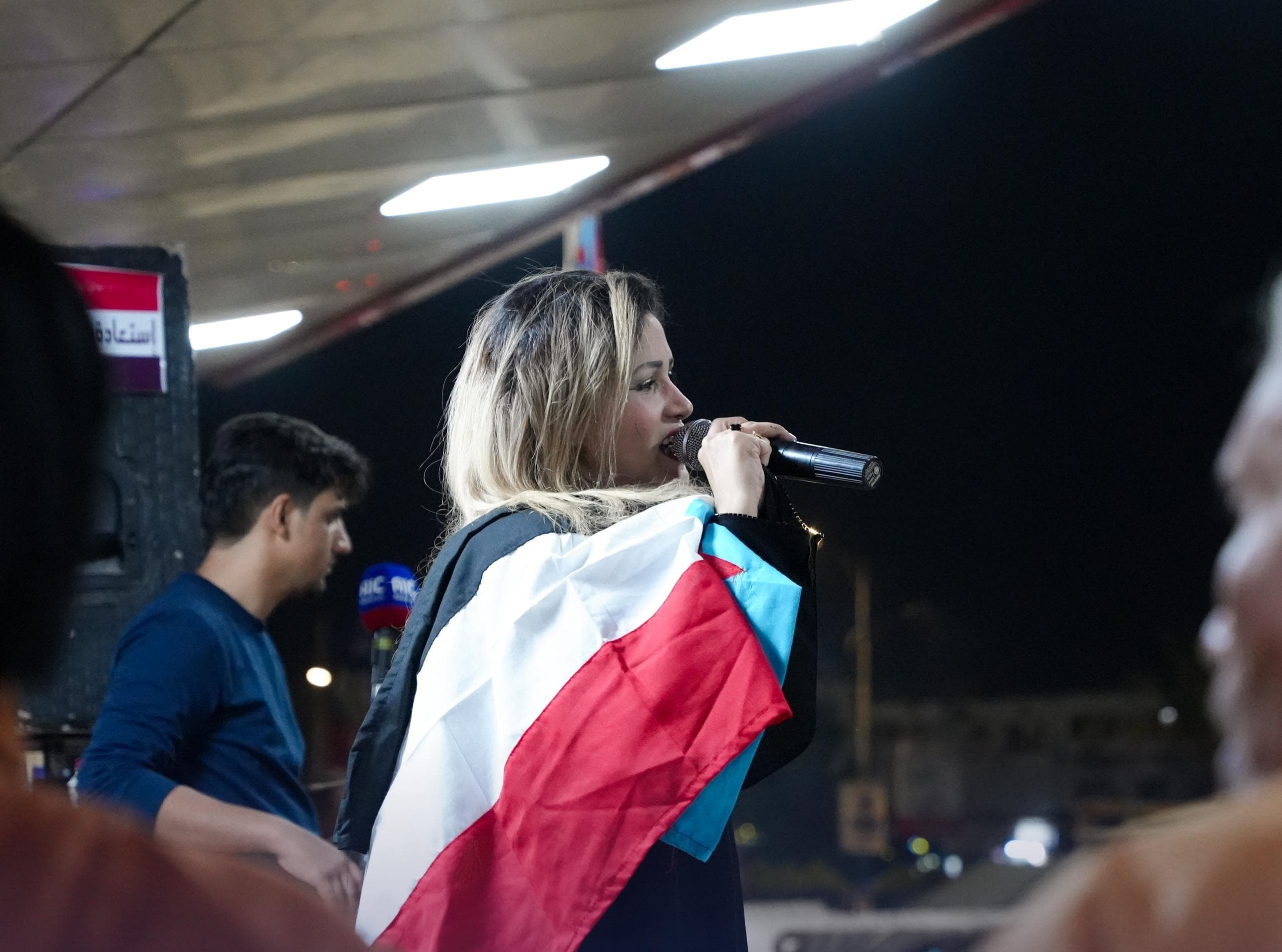 شهدت ساحة الاعتصام المفتوح في مديرية خور مكسر بالعاصمة عدن، مساء اليوم الخميس، إقامة أمسية فنية غنائية وثقافية، أحيتها الفنانة رويدا رياض، ضمن الفعاليات المصاحبة للاعتصام الجماهيري.