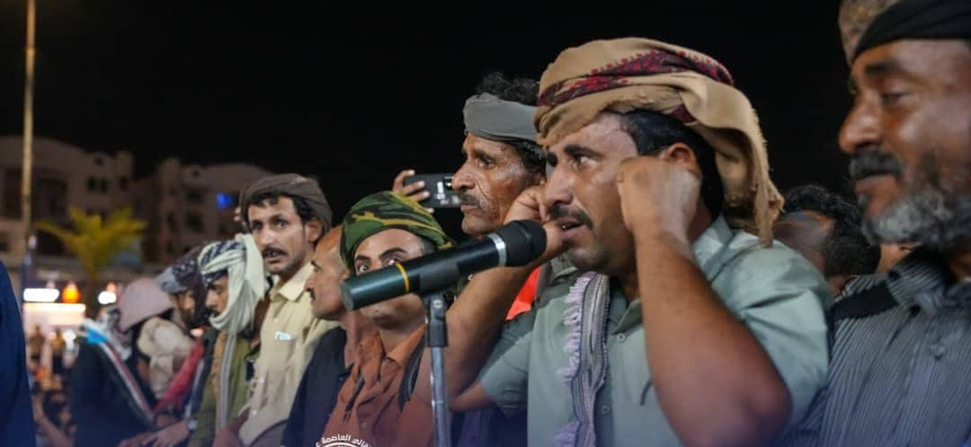 ساحة الاعتصام المفتوح بالعاصمة عدن تحيي أمسية ثقافية من التراث الشبواني