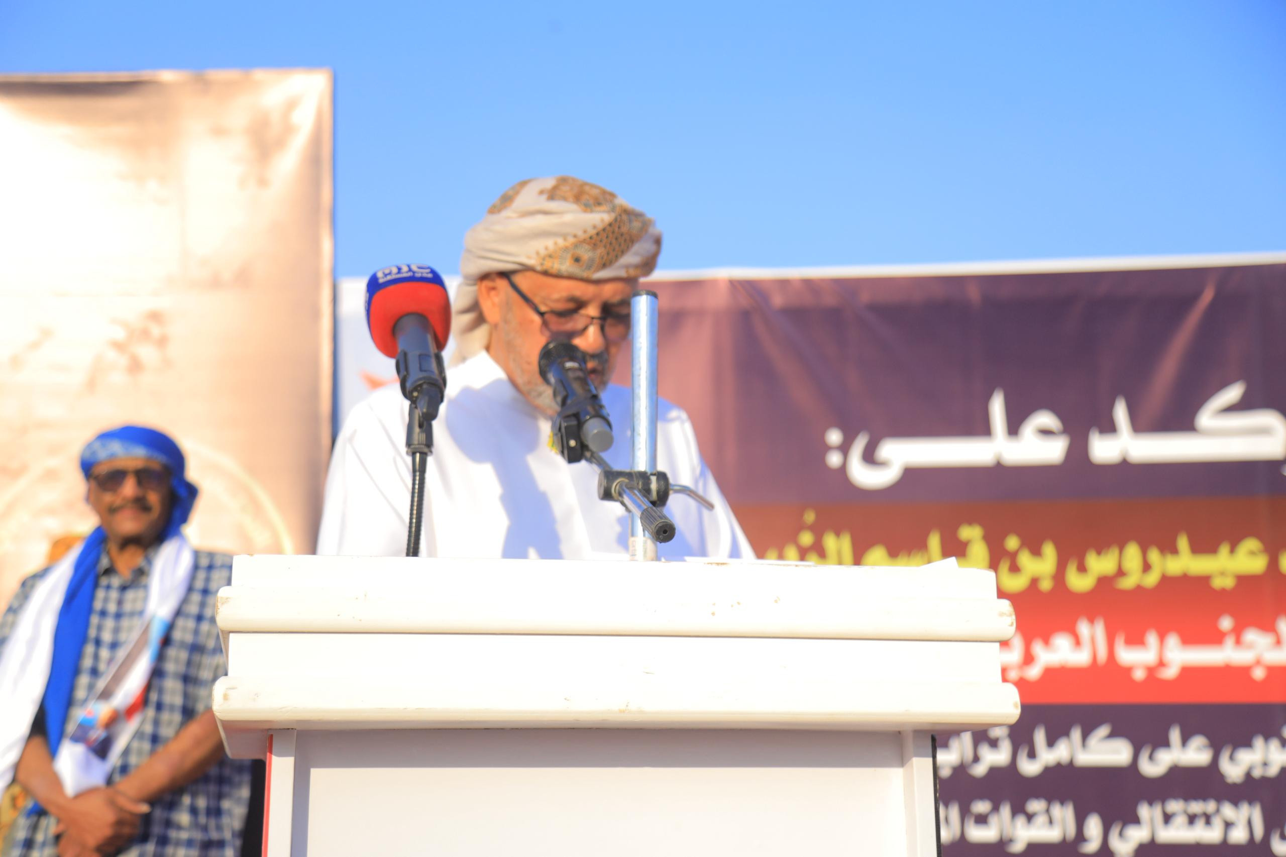 وأكد الصادق أن الاحتشاد الجماهيري يعكس وعي أبناء الجنوب وتمسكهم بحق مشروع استعادة الدولة الجنوبية كاملة السيادة، مشيدًا بتأسيس قوة النخبة المهرية كخطوة مهمة لحماية الأرض والمصالح، مباركًا بيان أعضاء مجلس القيادة الرئاسي، وأدان القصف الذي تعرّض له ميناء المكلا المدني، مؤكدًا أن المجلس الانتقالي مستمر في دعم قيادته السياسية حتى تحقيق هدف إعلان دولة الجنوب العربي كاملة السيادة.