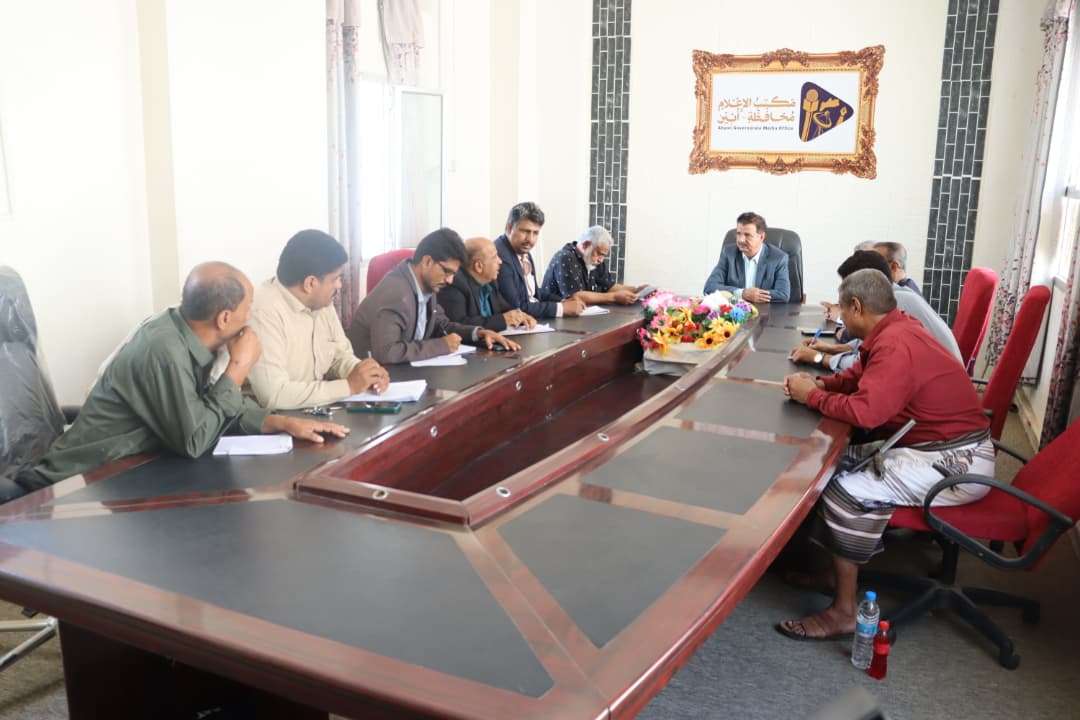 فريق التوجيه والرقابة الرئاسي يلتقي قيادة الغرفة التجارية ومكتب الصناعة والتجارة في أبين