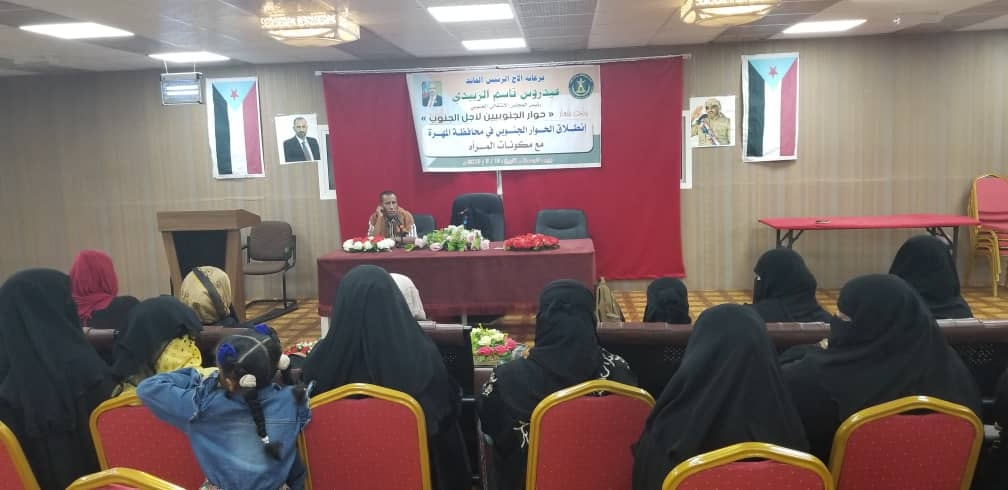 واستعرض مهدي في كلمته أهمية الحوار الجنوبي-الجنوبي، وضرورة تفعيل نشاط المرأة بالمحافظة لمواجهة متطلبات المرحلة الراهنة وإيجاد أدوات عمل في إطار سياسي موحد يحمل القضية الجنوبية، بحيث يحفز على السير في الطريق الصحيح، ومدى مشاركة المرأة المهرية ودورها المهم في العمل السياسي وبناء الدولة الجنوبية، موضحًا المحاور والأهداف الرئيسية للحوار.
