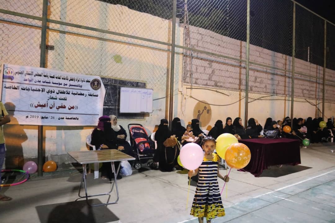 نظمت دائرة المراة والطفل في الأمانة العامة لهيئة رئاسة المجلس الانتقالي الجنوبي، بالتنسيق مع مؤسسة شباب عدن الواعد، يوم الأحد، أمسية رمضانية رياضية ترفيهية للأطفال ذوي الاحتياجات الخاصة تحت عنوان "من حقي أن أعيش"،